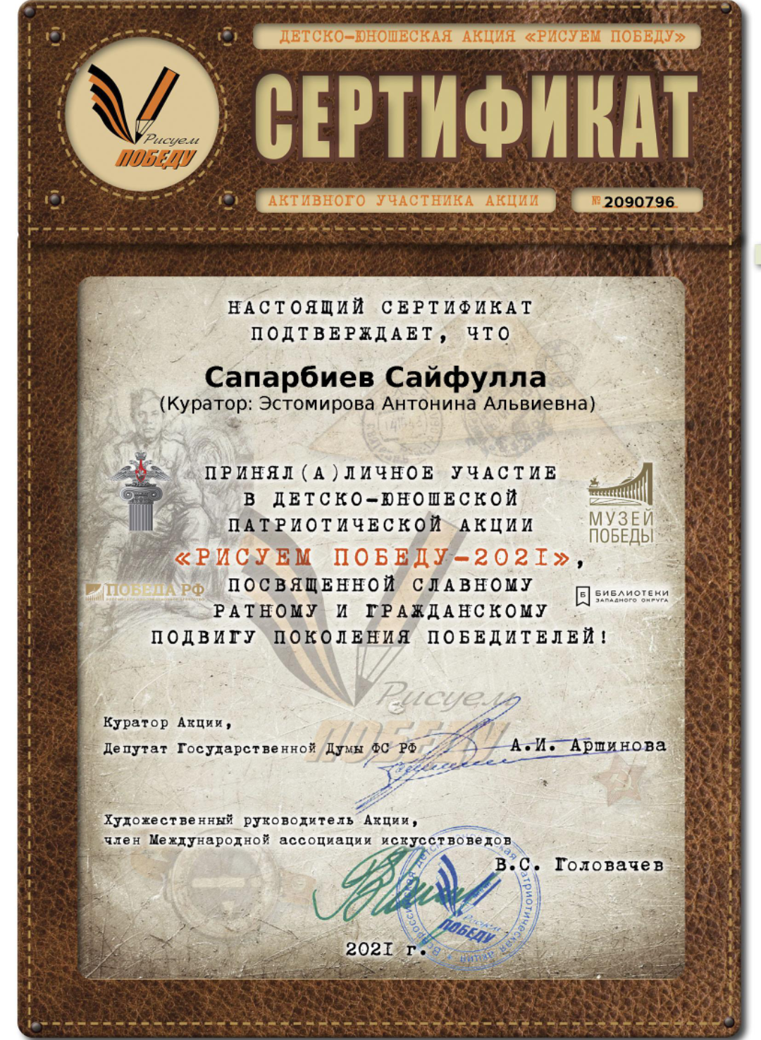 Воспитанник старшей группы "Утята" принял участие в конкурсе "Рисуем Победу".