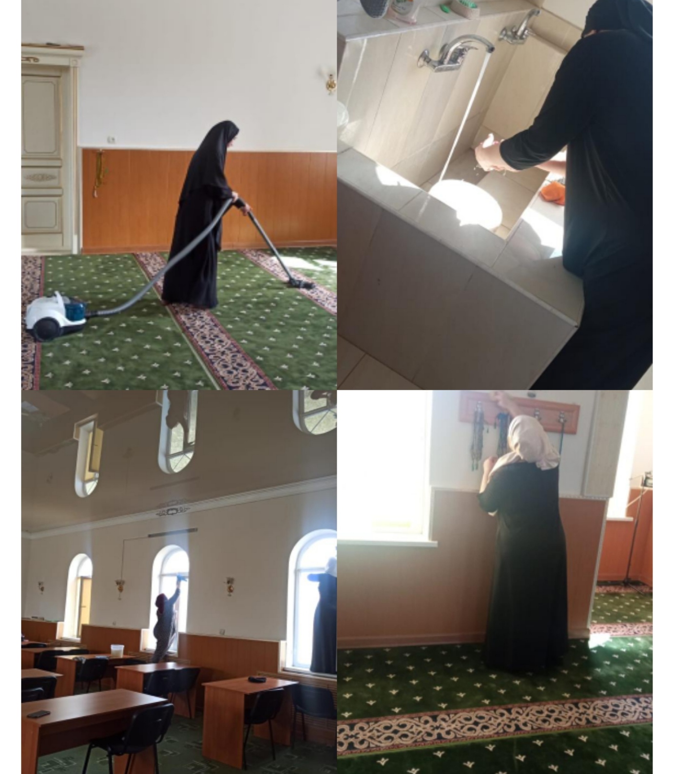 Сегодня работники нашего детского сада приняли участие в субботнике по очищению местной мечети в предверии священного месяца Рамадан.